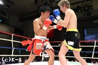 3R、ヒザで行く塚本に大野はカーフキックで対抗。塚本はヒザだけでなく繰り出す右ストレートのヒットも目立ってくる。塚本のヒザに掴む行為が見られ、レフェリーが注意する。塚本はプッシュからミドル、ハイ、右ストレートと攻めるが、大野もフック・アッパーと打ち返し、終了のゴングとなる。
