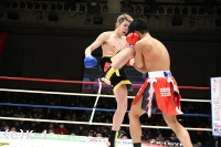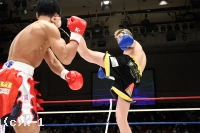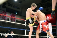 2R、塚本はやはり長身を利してミドルとヒザで攻める。大野は横に回って塚本の攻撃を正面で受けず、左フック、右ストレートを放つ。塚本はグローブと前腕で大野のパンチを弾きながら前進。ヒザを放つが大野にローブローとなってしまいインターバルが取られる。再開するとしかし塚本はヒザでの攻めを続行。大野はカーフキックを増やし塚本を止めんとする。