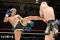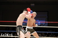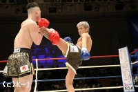 白幡は離れた位置からパンチを出しローいに繋いでいくが、三度(みたび)吉岡にローブローとなってしまい、吉岡はダメージに苦しむ。白幡には警告が出される。