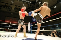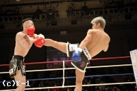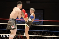 ダメージのある様子の吉岡は攻防に戻るが、白幡のローが下腹部をかすめると再び顔を歪める。ややインターバルの後で再開。