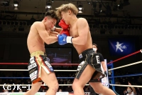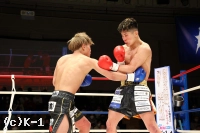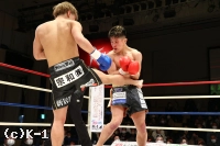児玉はその後も右ストレート、飛びヒザ、左フックと攻撃を散らし、昇也にダメージを蓄積する。そして昇也に胴回し回転蹴りを見せラウンドを終える。