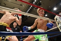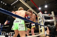 2R、長身を利したヒザ攻撃の塚本に対し、小嶋はローキックと接近してのボディフック。そして右ストレート、左フックと塚本を攻める。だが塚本も右アッパー、右ストレートと応戦。ここは小嶋がコーナー塚本をに詰めて右アッパー、右フックと攻勢で終える。