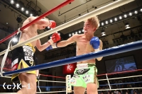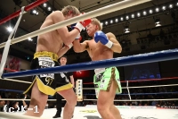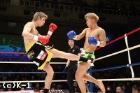1R、184㎝と長身の塚本はリーチを活かして右ストレート、左インロー、前蹴りを当てていく。やや先手を許した小嶋だがローを多用し、塚本の動きを止めにかかる。小嶋はカーフキックとローキックを蹴り分け、塚本にダメージを与えていく。