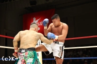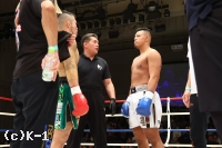 2Rも山口はガードを高く上げANIMALのパンチを防ぎ、重厚な右ローを当てていく。山口は掛け蹴り、後ろ回し蹴りと空手式の蹴りを放ってヒット。ANIMALもしかしラウンド最後はパンチをまとめて終える。3R、山口は右の蹴りをローキック、カーフキックと蹴り分ける。両者近距離でもつれる展開が多くなり、やや動きが止まる。山口は胴回し回転蹴りを見せるがヒットならず。判定は30-28、30-28、30-30の2-0で山口。ローを効かせて勝利を手にした。