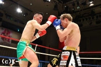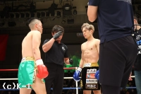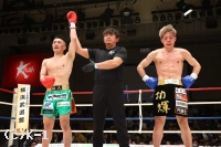 3R、前に来る赤田に対し、目黒はステップワークを使って左右にかわし、ローとカーフキックを当てていく。さらストレート、右アッパーとパンチと蹴りを混ぜて攻撃を組み立てる。笑みを浮かべ前に出る赤田だが、目黒は押して下がらせてショートストレートとカーフキック。目黒は細かなステップで正面を外し、赤田の攻撃を直撃させない。判定は30-29(赤田)、30-29(目黒)、30-29(目黒)と割れたものの、目黒が勝利して2連勝となった。