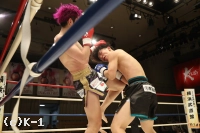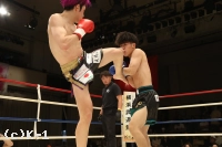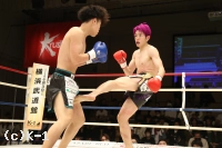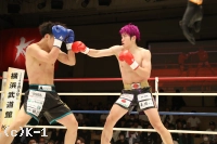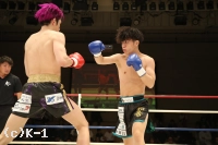 1R、サウスポーの増井は左ミドル、左ローから左ストレートを放っていく。提髪は蹴りを意に介さず右ストレート、左フックを返す。増井の蹴りがローブローとなってしまいインターバルが取られるが、再開すると提髪は頭を振りながらパンチを振るっていく。圧力を掛け増井をロープ際に下げさせると左フックで動きを止め、左フックを打ち込んで増井をKOした。
