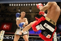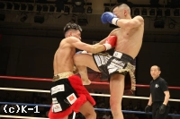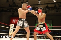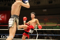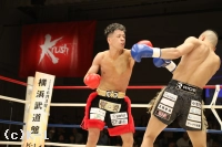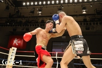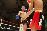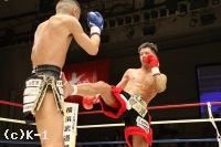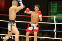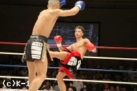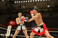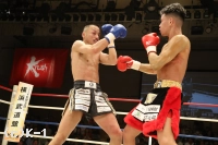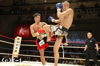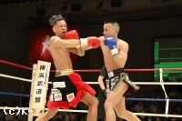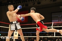 3R、右ミドルを蹴る宮崎に佑典は左ストレートを入れ、直後に左三日月蹴り。しかし宮崎はプレッシャーをかけつづけ、右ミドルを放っていく。そして右ストレートのヒットから宮崎が攻勢を掛ける。判定は30-28(宮崎)、30-27(佑典)、30-30と三者三様のドローとなり、延長戦に突入する。