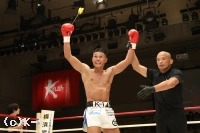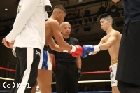 2R、ダウンを喫した下村はジャブを突きながら松本を追う。松本はしかしボディ打ち、ヒザ蹴りと見舞い再び左ストレート。下村はパンチで応戦するが、松本は再びラウンド終盤に左ストレートを当て、さらに左クロス、右フックを打ち込む。これで下村は腰砕けになってダウンを喫し、レフェリーが試合を止めた。