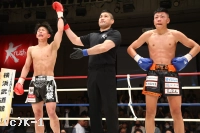 3R、大夢は前に出て左・右とストレートを打ち込む。大鹿はロープ・コーナーを背にするが、そこからパンチ・ミドルを返す。大夢がパンチを強振してきても、大鹿はよく見えており頭を振ってクリーンヒットさせない。判定は30-29、30-29、30-29の3-0で大鹿。プロ無敗のまま涙の王座戴冠を果たした。