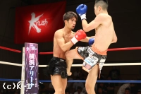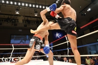 3R、MOMOTAROの蹴りが稲垣の下腹部に入ってしまい一時インターバルが取られる。再開後、MOMOTAROはバックブローなどかく乱せんとするが、稲垣は的確にブロックし逆に左フックをヒット。両者近距離の攻防でMOMOTAROは飛びヒザ、ハイキックと放つが稲垣はよく見えており当てさせない。判定は30−28、30−28、30−28の3−0で稲垣。ベテラン巧者MOMOTAROを下した。