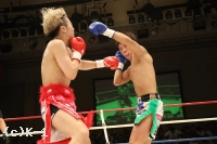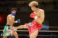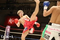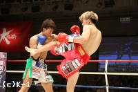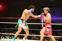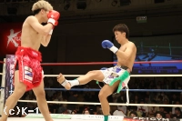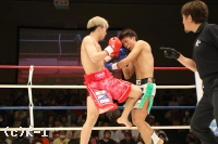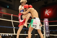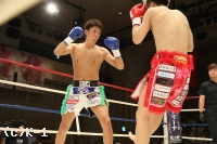 2R、三宅はジャブから距離を詰めていくがTETSUもジャブをクリーンヒット。さらにTETSUはジャブからローキックとカーフキックを当てていく。三宅のパンチを警戒しながらTETSUはミドルとローキックでヒット&アウェーを見せる。さらにTETSUがヒザ蹴りで攻勢を作り、2Rを終える。