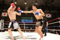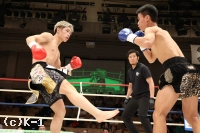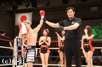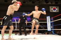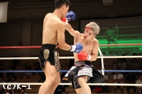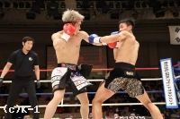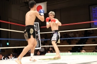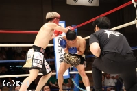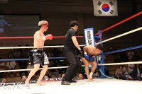 1R、ヒョンウの右ローに壬生狼が左右パンチを合わせる。コーナーを背負ったヒョンウを連打で攻め立てる壬生狼だったが、もみ合いの中で受けたバッティングで壬生狼が右額上の生え際をカットする。チェックからの再開後もパンチからローに繋げる打ち分けで攻める壬生狼。打ち合いの合間にヒットさせる右カーフを積み重ね、ヒョンウは大きくバランスを崩す。