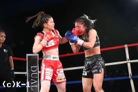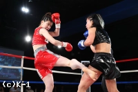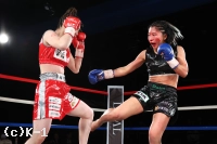 1R、前に出るドギョンに☆SAHO☆はしかしスピードあるワンツー、ローキックで対抗。続いて右フックを打ち込むが、ドギョンもこれにすぐ右フックを返す。☆SAHO☆は先手で攻め、パンチからローキックに連係。☆SAHO☆は終盤、ボディ打ちを交えたラッシュにヒザを加え、ドギョンを一方的に攻め立てる。