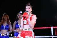 「応援本当にありがとうございました。倒し切れなかったっていうのが悔いなんですけど、一番私が面白い試合をしたと思うし、男に負けないぐらいの試合をしたと思います。中村プロデューサー、6月の横浜大会にぜひ呼んでください。男と同じぐらい面白い試合を見せる自信があるので、ぜひ呼んでください。私は応援してくれる人のおかげで頑張れているので、女子の格闘技を盛り上げていこうと思っているので最後まで応援お願いします」