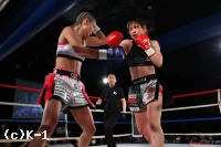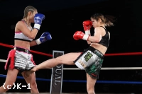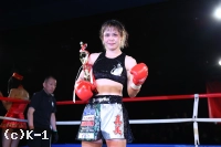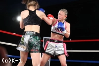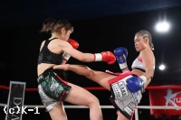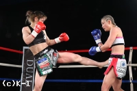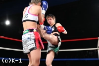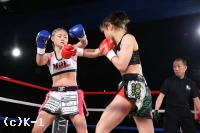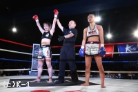 3R開始とともに前に出る真美だが、MOEはミドル、ローと蹴り数を増やし真美を近寄らせない。真美はガードを高くし、攻め寄るタイミングをうかがう。リズムに乗ってきたMOEはヘッドワークで真美のパンチをかわして左ハイを連打する。判定は29-28、29-28、30-28の3-0で真美。1Rにダウンを奪い、勝利を手にした。