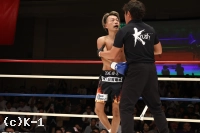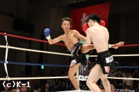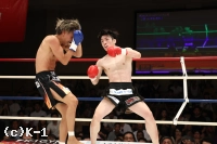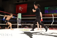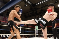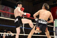 1R、リング中央にどっしりと構えるサウスポーの心直。細かくスイッチを繰り返す矢島は左右ロー。心直は左前蹴りで距離を測り、矢島の入り際に右フックをカウンターで合わせる。リングを回りながら右の蹴りを上下に散らす矢島。飛び込んで右フックを放つも心直は動じず。パンチで飛び込む矢島へカウンターの左フックをヒットさせ、さらにパンチを繰り出す矢島へ左ハイキックを直撃する。ヨロヨロとロープまで崩れながら後退する矢島にレフェリーはダウンを宣告。立ち上がるもふらつく矢島をストップし、心直がKO勝利を収めた。