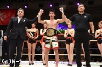 延長R、池田がゴングと同時に右のミドルキック。璃明武もボディブローを連打しながら前に出る。璃明武は池田がバックブローを放ったところでパンチをまとめる。さらにパンチを放ちながら前に出てプレッシャーをかけていく。しかし、池田も下がらない。近い距離からヒザ蹴りを連発だ。ならばと璃明武がパンチを連打。池田もパンチで応戦。両者、近い距離でパンチの打ち合いとなる。最後に璃明武が顔面にパンチの連打をしたところで、ゴング。再び判定となり、10-9、10-9、10-9の3-0で璃明武が勝利を飾り、Krushスーパー・バンタム級王座の3度目の防衛に成功したのだった。