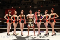 試合後、表彰式でベルトとトロフィー、そして勝利者賞を受け取った璃明武は、マイクを握って会場のファンに挨拶を行なった。