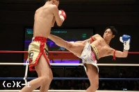 2R、池田が回し蹴り。さらにパンチ、左のミドルキックを繰り出す。だが、璃明武はプレッシャーをかけ続ける。ならばと池田は右のカーフキック、ミドルキックだ。璃明武はボディブローの連打でやり返す。さらにボディにストレートを叩き込む。だが、池田も右の上段回し蹴りで応戦。お互いにキック、パンチを繰り出しながらやり合うが、決定打はなくラウンドは終了だ。
