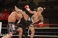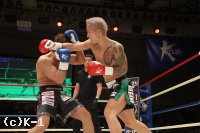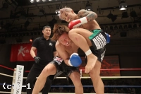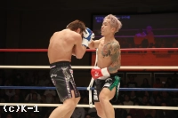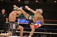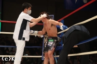 1R、まずは瑠久が右のローキック。蓮實もプレッシャーをかけながら応戦するが、瑠久はローキックとパンチのコンビネーションだ。さらにボディへの右の回し蹴りを2連発。続けて右のカーフキック、パンチのコンビネーションを放つと、またも右の回し蹴りだ。それでも前に出る蓮實。そこに瑠久の右のパンチが炸裂し、蓮實がぐらつく。倒れなかった蓮實に、瑠久は上段の右の回し蹴りでダウンを奪ってみせる。さらに立ち上がった蓮實が崩れて抱きついてきたところで、瑠久が背中を押さえたようにしながら左のヒザ蹴り。この一撃で蓮實が倒れてしまうが、試合は中断されて検証が始まる。検証の結果、瑠久に掴んでからの攻撃によりイエローカードが提示される。再開後、またも瑠久の右の上段回し蹴りが炸裂。今度こそ蓮實が倒れて、レフェリーが試合をストップ。瑠久の1R2分38秒でKO勝利となった。