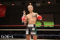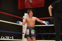 「こんにちは! 前回ちょっとK-1で大事故を起こしちゃって、カーフキックでやられちゃったんですけど、あれは僕は事故だと思っているんで、全然実力…。1R目に筋の方を切れちゃって、ちょっと今日はしっかり実力を見せてやろうかと思って、この試合に全力で臨みました。あんまり言うこととか考えてなかったんですけど、会見でも言った通り、K-1抜けてからK-1に文句、YouTubeで暴露したりとか、そういうのめちゃめちゃダサいし、K-1で一生懸命戦っている選手に失礼だし、今までK-1で歴史を作った先輩にも失礼なんで。カッコいい奴はあんなこと言わないんで。僕もこれからK-1でデビューする子とか、そういう子たちにカッコいい目標である選手でいられるように本気で頑張りたいと思います。今日は僕の可能性をちょっと見せられたんじゃないですか? これからの期待、よろしくお願いします。ありがとうございました」