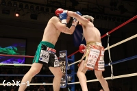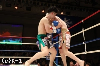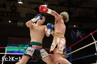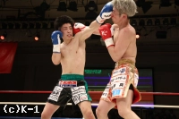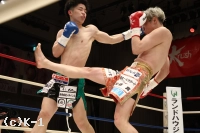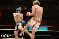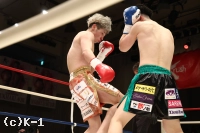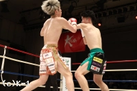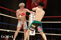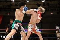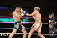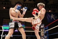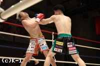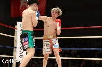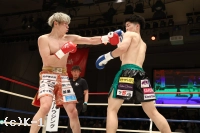 1R、まずは山浦がローキックを打っていくが、下村も中に入るようにパンチを打っていく。距離が近くなったところで、お互いにパンチを繰り出し合う。ここで下村が山浦をロープに追い詰めてパンチを連打。しかし、山浦もパンチで応戦。ローキックを放ちながら距離を取っていく。さらに山浦は回し蹴り。ならばと下村は前に出てコツコツとパンチを当てていく。山浦は鼻血が見られる。