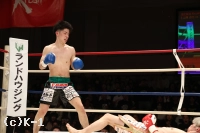 2R、ジャブを飛ばした山浦に対して、下村が前に出てコーナーに追い詰めて行く、しかし、山浦も回り込んでパンチで応戦。下村の右フックが炸裂するが、山浦も下がらない。しかし、下村は左のジャブを当てたりと冷静だ。下村は左のジャブをコツコツと当てて右ストレート。山浦をのけぞらせる。ならばと山浦も前に出て下村をロープに追い詰めて右のパンチを放つが、交錯するように下村の右フックが顔面に炸裂。倒れた山浦を見てレフェリーが試合をストップし、下村が2R1分31秒でKO勝利を飾ったのだった。