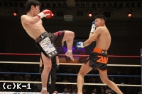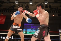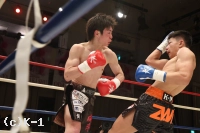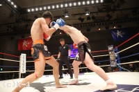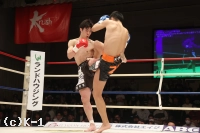 1R、ゴングが鳴ると大夢がカーフキック。黒川もカーフキックを飛ばして、お互いに様子を見合う。さらにジャブを、カーフキックを交えながら様子を見合うが、黒川のパンチがヒット。大夢も下がらない。黒川がボディブローを放てば、大夢もハイキック。大夢も右ストレートが顔面にヒットさせる。