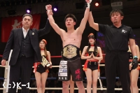 「どうも、Krushバンタム級王者・黒川瑛斗です。まずたくさんの応援ありがとうございました。初防衛戦ということでもっと圧倒的な、下の階級のチャンピオンというのもあったんですけど、圧倒的な試合で自分がバンタム級の顔だぞっていうところを見せたかったんですけど、これでもう僕はバンタム級に日本人は相手がいないと思っていて、K-1バンタム級は僕が引っ張っていくという形でいいと思っています。でも、それにはこのベルトは違くて、K-1バンタム級、今王者がいないと思います。今年中に是非トーナメント開催していただけたら嬉しいです。宮田さん、お願いします。今年中に僕は絶対にK-1チャンピオンになって、王者がいない、絶対王者がいないK-1っていうのはがあっちゃいけないと思うんで、僕がバンタム級のチャンピオンになって、これからK-1を引っ張っていけるような存在になっていきます。これから注目お願いします。ありがとうございました」