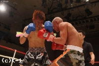2R、ミドルとローで攻める堀尾、匠はカウンターの右ストレートを当てる。下がらない堀尾はミドルとローで距離を詰めて、飛びヒザ蹴りを繰り出す。しかし匠も右ストレートを起点に徐々に前に出て、終盤、スピーディな連打で堀尾を攻め込む。