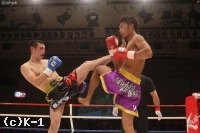 1R、渡辺が左ミドルと右ロー、大沢は左フックから右ストレート・右ボディにつなげる。ローを蹴って前に出ていく渡辺。ここで大沢の蹴りがローブローとなり、試合が一時中断となる。再開後、大沢が渡辺の蹴りを受けて左ボディを返し、そこから右ストレート。距離が詰まると左右のボディを集めて顔面に右フック、前に出てくる渡辺に飛びヒザ蹴りを狙う。