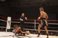 1R、一気にプレッシャーをかけていく北井。島野はそこに左右のフックを打ち込む。これで島野が北井をなぎ倒して秒殺KO勝利。島野が4勝(3KO)1敗の勝ち点11でWILDRUSHリーグ優勝を果たした。(北井は2勝(1KO)3敗で勝ち点5)