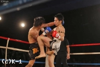3R、佐々木がインローから右ストレート。ヒザ蹴り、ミドル、パンチでボディを攻める。園田も顔面前蹴りを返すが、佐々木はガードを上げてヒザ蹴りで前進。ガードを固めて棒立ちになる園田をパンチとヒザ蹴りで攻め続ける。判定は3-0で佐々木の勝利。力強い攻撃を見せた佐々木がリベンジを果たした。