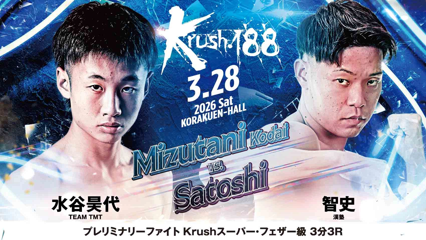「Krush.188」3.28(土)後楽園 プレリミナリーファイト 水谷昊代vs智史が決定!