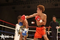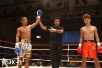 3R、すぐに前に出ていく亀本。しかし武居はフットワークを使って細かくパンチを当てる。亀本はパンチとローで前進、武居は左ストレート・右フックを返す。距離を潰してパンチとヒザ蹴りで攻める亀本に対し、武居も右フックを当てる。3R通じて自分の攻撃を的確に当てた武居が判定勝利した。