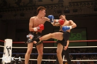 2R、石田がジャブを当てて右ローと左ミドル。朝久の左ミドルに左フックを合わせ、右アッパーからパンチをまとめる。パンチ&右ローの朝久。石田も右ローを蹴り返し、朝久のパンチに右フックを叩き込む。朝久は前蹴りと左ミドル、石田は距離を潰してパンチとヒザ蹴りを返す。
