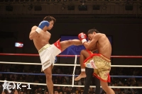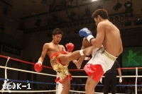 1R、サウスポーの藤橋が左ストレートとヒザ蹴りで前に出る。林も前蹴りとミドルで距離を取ろうとするが、そこに藤橋が全身で飛び込むような左ストレート。この一発で林がばったりと崩れ落ち、藤橋が豪快なKO勝利を収めた。(藤橋=勝ち点3、林=勝ち点1)