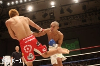 2R、中島はしっかりガードを固めて右ローを連打。山内は中島の蹴りに右ストレートを狙うが、中島は確実にローを蹴り返す。距離を詰めて、中島のガードの間にフック・アッパーを狙う山内。しかし中島のガードは固く、逆に中島が右ロー、奥足ローを確実にヒットさせる。