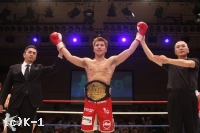 (倒しにいけたというのはローですか?)いや、パンチですね。ローで倒す気はなかったです。パンチで効かせてたので。もっとスカッと勝ちたかったんですけど、勝ってもそんなに『ウォー!』って感じではないというか……(苦笑)。まあでも、うれしいです。(この一戦から得るものは?)まだ、自分のスタイルも完成してないですし、発展途上なので、まだまだ強くなると思います。日本人だと70kgじゃチャンピオンになれないと思ってる人がいると思うので、それを覆すために、Krushのベルトを持ってる自分がK-1の、世界のチャンピオン目指していきたいと思ってます」