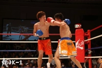 3R、ステップを使う瀧谷が右フックから左ストレート。亀本はヒザ蹴りで迎え撃つ。前蹴りとミドルで前に出る亀本。瀧谷もパンチをまとめて前に出ていくが、亀本も下がらずパンチとヒザ蹴りで応戦する。本戦はジャッジ1名が29-28で亀本を支持するも、残り2名は29-29と差をつけず、延長戦へ。