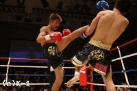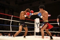 3R、距離を詰めてアッパーとボディブローを打つ大岩。朝久はインローと左ストレートで迎え撃つ。ひたすら前に出る大岩だが、攻撃を当てるのは朝久。終了間際には飛びヒザ蹴り・顔面前蹴りをヒットさせる。判定3-0で朝久が勝利した。
