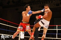 2R、稲石は左右にステップを踏んだ後で跳び上がって2段蹴りを見せ、さらに舌を出して高橋を挑発する。高橋がこれに呼応して前に来るとローを見舞い、ロープに詰められてもクリンチを駆使して攻撃を直撃させない。右ストレート、右ローで追う高橋だが、稲石は連続でのヒットを与えない。ラウンド最後は余裕の表れか、不発に終わるも稲石が胴回し回転蹴りを見せて終える。