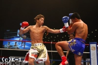 「(試合の感想は?)約4カ月ぶりくらいで。試合が大好きなので、空いちゃってつまらなかったので、凄く楽しめましたね。僕は高校のときにタイに行くくらい、ムエタイはリスペクトしてる格闘技なので。そういう選手とK-1で戦えてうれしかったですね。蹴りで来るかと思ったら、意外とパンチが強くて。途中で効いたんですよ、左目もちょっとボヤけてて。ムエタイの選手はポーカーフェイスなので、コッチの攻撃が効いてないのかなと思って。凄く打ちあいにきたので、ここしかないと思いました。自分的にも打ち合いたかったですね。凄く楽しくて、スイッチが入って、そうしたら当たったので。