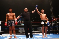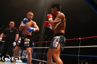 山崎はプレスを強め出ていくが、渡部は前蹴りを連発してこれをストップ。加えて横に回る動きも見せ、左右ストレートを見舞い、距離ができると山崎にハイキック。さらに左ヒザを顔面に送って効かせ、左ストレートと右フックの乱れ打ちで山崎を攻め立てる。ヨロヨロと後退する山崎だがダウンは拒む。そして息を吹き返すと右ストレート、左右フックで反撃する。だが、ラウンド最後は渡部が左ストレートとハイキックで優勢となる。