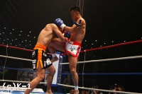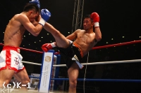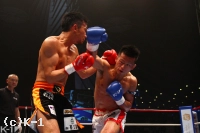 前に出る意気込みと圧力の強い郷州は右ストレートを中心に跳びヒザ交ぜる戦いで、神戸を下がらせる場面が目立つ。逆に神戸が出てくると郷州は腕を前に伸ばし、懐を深くして攻撃を当てさせない。ラウンド終盤、前に出た郷州は神戸の連打の間に右クロスを伸ばしてヒットを上げる。