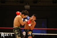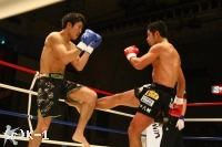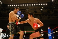 1R、やる気を見せ前に行く藤村だが、山崎は後ろ足に重心を置いて構え、藤村の攻撃を見切ってかわす。しかし藤村は圧力を発して出て、右ストレート、右フックの強打で山崎を襲う。だが山崎は落ち着いてこの攻撃をブロックをし、冷静さを崩すことはない。そして狙いすました右ボディストレートを打ち込み藤村のガードを落とす。山崎の左ミドルに藤村は右ローを返す。