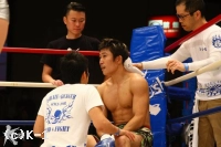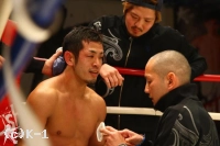 3R、山崎は手応えのあったボディへの攻撃を右ストレート、左フックと打ち込む。しかし藤村もボディへのヒザを放って反撃。攻め落さんとする山崎だが、藤村も手数を落とさず応戦し、山崎に右ストレート・右クロスを入れて迫る。ロープに釘付けとなる山崎。攻撃を被弾し左目じりから出血が見られるが、目はしっかり藤村を見据えている。