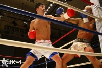 1R、将はサウスポーからの左ミドルを音を立てて打ち込み、石川の出足を止める。石川が出ようとしても将は左ストレート、右フック、ボディへのヒザと攻撃に力を込める。だが、石川は圧力を落とさずに将へ迫り、左・右と順にフックでとらえる。将にロープを背負わせ、打ち合いに巻き込む石川。