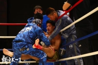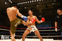 左ミドルからの左ストレート、左右フックの連打でフィニッシュに掛かった鈴木だが、田畑は右前蹴り、右ミドルで反撃。そして右ストレートで鈴木からダウンを奪い返す。
