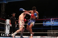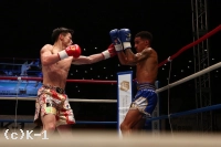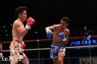3R、跳び蹴りを見せ、フック&ローと先手で攻める寺戸だが、ウィーランはすぐロー、ミドルと攻撃を返す。両者一進一退の攻防が崩れない。左構えにもスイッチするウィーランは寺戸のローをたびたび空振りさせる。そして逆に寺戸の脚にローを浴びせる。ラウンド最後、寺戸は跳びヒザからフック&ストレートで攻撃を仕掛けて終える。